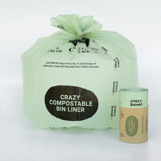 Die Marke Crazybones aus Litauen produziert nachhaltige Hundenahrung und biologisch abbaubare Kotbeutel für Hundekot als auch biologisch abbaubare Folien und Müllsäcke für Restmüll. Die biologisch abbaubaren Produkte sind aus Maisstärke hergestellt.
